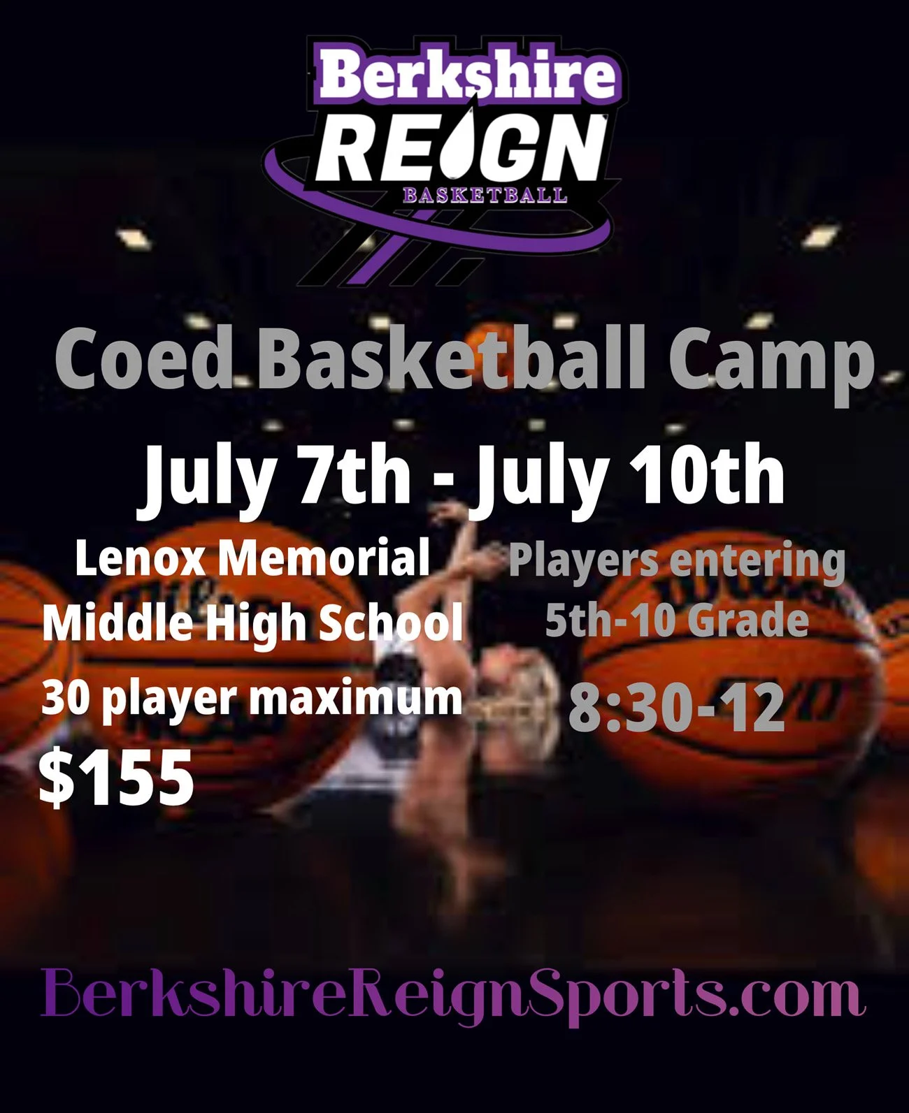 Join Berkshire Reign for more basketball fun in the summer! Summer Programs are dedicated to teaching all basketball levels in a positive, supervised environment. There will be an effective mix of drills, team play and contests. All with an emphasis on positive attitude and fun!